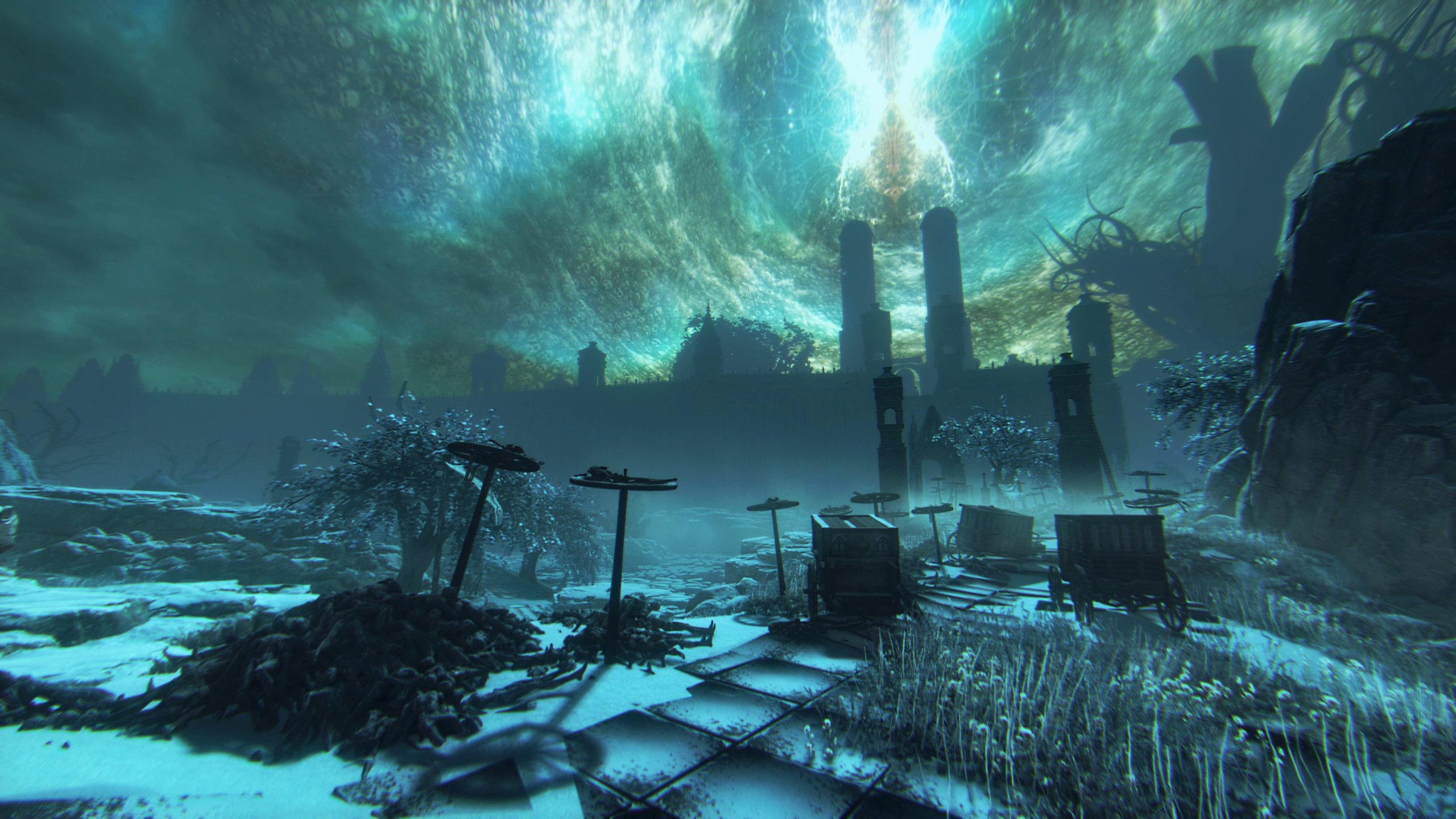 To get this done, a ton of new and custom assets and tilesets for both interiors and exteriors (and their LODs) were either created or integrated into the game to support the style we're going for; a snowy, gothic, fallen city and the decrepit ruins of ransacked villages and forts, roads fallen to disrepair, opulent cathedrals, the aftermath of battle, and the outgrowth of a corruption that seeps its suffocating tendrils on the world.